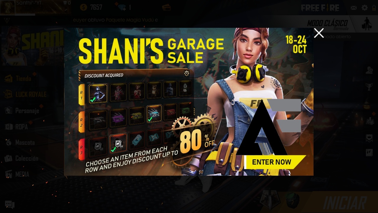 Garena acaba de lanzar un evento de la nueva personaje SHANI donde podras conseguir skins exclusivas y cajas de armas con un descuento de hasta el 80 % .